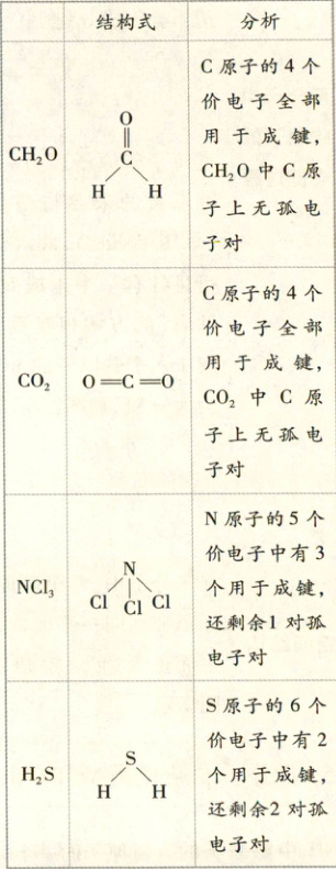价电子对互斥模型与分子的空间结构相同,说明分子的中心原子上的价电子对全部参与成键,无孤电子对。