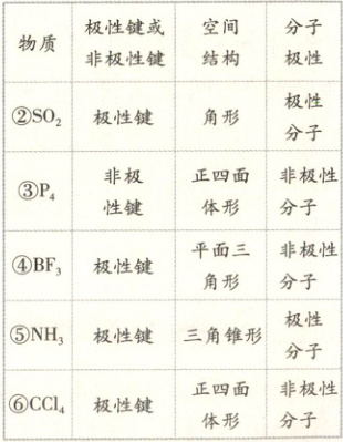 + 例2-12 (2025 山东青岛期中)现有下列物质:①$MgCl_2$ ②$SO_2$ ③白磷 ④$BF_3$ ⑤$NH_3$ ⑥$CCl_4$
