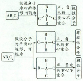 + 例4-16 有一种 $AB_2C_2$ 型分子,在该分子中 A 为中心原子。下列关于该分子的空间结构和极性的说法正确的是