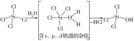 (2)[新角度·$ d$ 轨道参与的杂化类型](全国卷)$ SiCl_{4}$ 是生产高纯硅的前驱体,其中 $ Si$ 采取的杂化类型为。$ SiCl_{4}$ 可发生水解反应,机理如下: