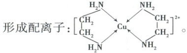 (图示内容:配离子结构简式,${Cu^2+}$为中心离子,与2个乙二胺分子中的4个${N}$原子形成配位键)
