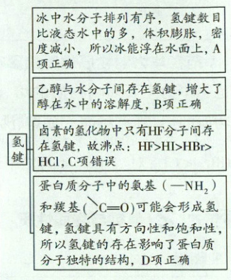 例2-4 (2025湖北十堰联考)下列有关氢键的说法错误的是