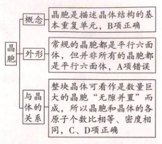 概念→晶胞是描述晶体结构的基本重复单元,B项正确