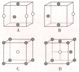 B、D项:根据切割法计算出一个晶胞中所含微粒数目,求出晶胞所含微粒个数的最简整数比,从而写出晶体的化学式。由晶胞结构可知,晶胞中位于棱上和体心的钛原子个数为$ \underline{[3]} =4,$位于顶点和面心的氮原子个数为$ \underline{[4]} =4,$该氮化钛晶体的化学式为$ \underline{[5]} 。$