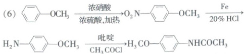 (6)4-甲氧基乙酰苯胺(${<=>[][]}-NHCOCH_{3}OCH_{3}$)是重要的精细化工中间体,写出由苯甲醚(${<=>[][]}-OCH_{3}$)制备4-甲氧基乙酰苯胺的合成路线: