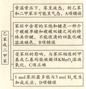 常温常压下,苯呈液态,则乙苯和二甲苯不可能呈气态,A项错误