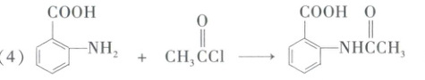 (4)${◯ -COOH -NH_2 + CH_3CCl=O -> ◯ -COOH -NHCCH_3=O + HCl}$