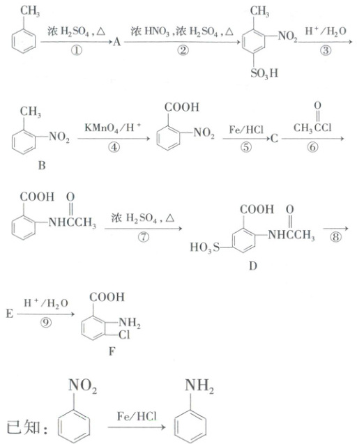 (3)该流程未采用甲苯直接硝化的方法制备B,而是经由①②③三步反应制取B,其目的是。