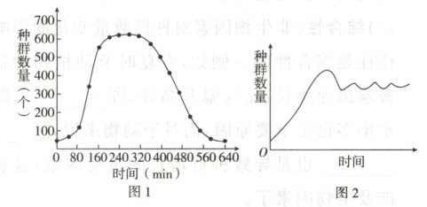 解析:图1种群数量在前期符合“S”形曲线增长,而在后期不断下降,所以总体不符合“S”形增长,A正确;320min时更换培养基增加了营养物质,所以种群数量可能会增加,而不是保持在600左右,B错误;从图2中可以看出,酵母菌种群的数量变化有上升、下降和在一个相对稳定的范围内波动,C正确。