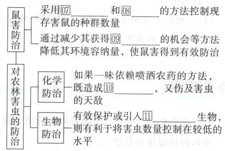 足 ⑼种内竞争 ⑽受到限制 ⑾捕食对象 ⑿以其他