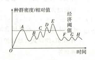 再次增加。E点开始进行生物防治。据图分析E点的防