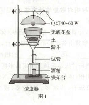②如图1,在无底花盆中放置个金属网,将取到的土壤样品放置在金属网上,为了使空气流通土壤与花盆壁之间要留一定的空隙。然后,将花盆放在诱虫器上,打开电灯。