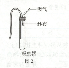 吸虫器中的纱布作用是防止 ㉑____,将其收集在试管中,如图 2