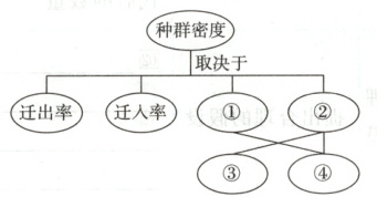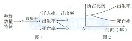 [例4] 图 1 是种群数量特征的概念图,图 2 是某地人口出生率和死亡率的变化曲线。下列相关叙述中,错误的是 (