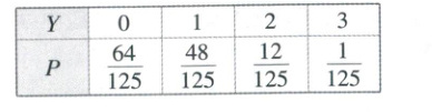 所以$P(Y=k)= C_{3}^{k}×(\frac{1}{5})^{k}×(\frac{4}{5})^{3-k}(k=0,1,2,3)$,
