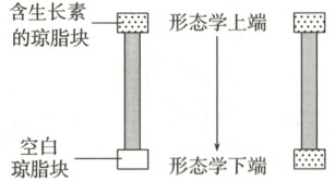 (2)将该胚芽鞘切段倒置,即形态学上端在下,形态学下端在上,观察位于下方的空白琼脂块中是否能获得生长素。