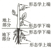 1. 在形态学上,分生迅速,向上或者向下延伸的是上端;分生缓慢,不延伸或者延伸很少的是下端。对于地上部分而言,树枝是形态学上端,而树干是形态学下端。对于地下部分而言,距离地面远的部分为形态学上端,距地面近的部分为形态学下端。