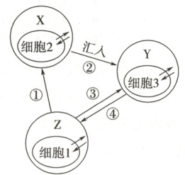 21. (11 分)下图表示健康人体内的几种细胞及其生活的液体环境(用 X、Y、Z 表示),①②③④为 X、Y、Z 这三种体液之间联系的途径,据图回答下列问题: