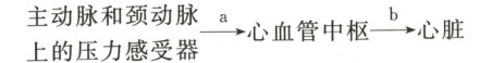 2. 某健康人受到惊吓后,收缩压(心脏收缩时血流对血管壁的侧压力)升至140 mmHg以上,通过体内调节机制可恢复正常,如下所示,图中b是