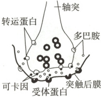 4. 多巴胺是一种兴奋性神经递质,有人称它为“快乐分子”。可卡因(一种毒品)就是通过防止多巴胺回流使多巴胺持续作用,使人感到兴奋的。如图是可卡因的作用机制,下列选项错误的是 (