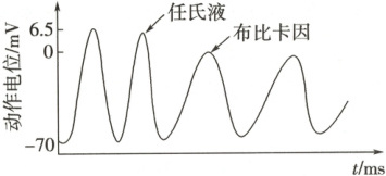 3. 研究人员探究了布比卡因(药物名)对牛蛙坐骨神经干复合动作电位的影响,实验结果如图。已知神经干动作电位是由许多不同神经纤维产生的动作电位叠合形成的综合性电位,相关叙述正确的是 (