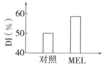 时,表示小鼠几乎不具有长时记忆。(3)褪黑素(MEL)是由松果体产生和分泌的一种激素。已有研究显示 ,MEL 可调节记忆的形成。科学家继续深入研究了 MEL 对小鼠的长时记忆的确切影响。分别向小鼠注射 MEL,经过训练后进行测试,结果如图所示。图中对照组应做的处理是