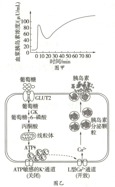 。(2)图乙所示过程中,当胰岛B细胞内ATP产生量增加时,会导致