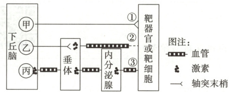 7.图中甲、乙、丙代表下丘脑的某些区域,①②③表示不同的调节途径,下列叙述错误的是