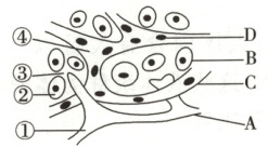 1. (链接P₃思考·讨论)如图为人体肝脏局部结构示意图,A、B、C、D表示细胞,①②③④表示不同的体液。下列叙述错误的是(