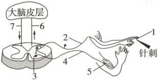 2.提示:大脑皮层 感受器→传入神经→脊髓神经中枢→大脑皮层 感受器→传入神经→脊髓神经中枢→传出神经→效应器 不属于 反射活动需要经过完整的反射弧来实现