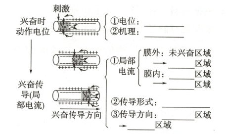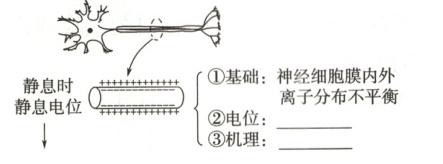 (2) 在图示位置的左侧给予刺激时,电极a处先变为_______电位,接着恢复_______电位;然后另一电极b处发生同样的变化。