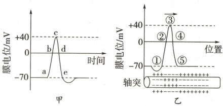 箭头方向可知,图乙中的神经冲动沿轴突自左向右传导,B正确;