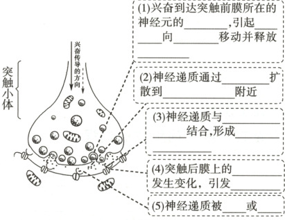 5.× 提示:神经递质有兴奋性和抑制性两种,其作用于突触后膜会使下一个神经元兴奋或抑制。