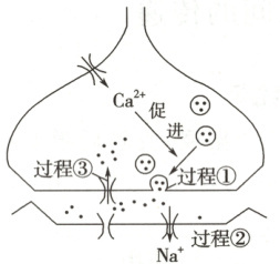 (1)当神经冲动沿着轴突传导至轴突末梢时,突触前膜对Ca²⁺的通透性会增加,大量的Ca²⁺进入突触小体内,Ca²⁺会促进突触小泡向突触前膜靠近,以胞吐的方式将其中神经递质释放到突触间隙中。能量来自细胞质基质和线粒体。