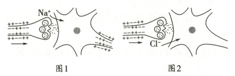 (1)图 1 神经递质作用于突触后膜,使突触后膜$Na^+$通道开放,$Na^+$大量内流,使下一个神经元产生_________;图 2 神经递质作用于突触后膜,使$Cl^-$通道开放,$Cl^-$内流,使下一个神经元产生_________。