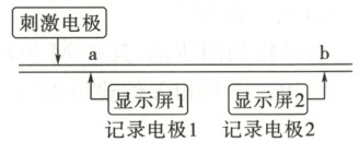 1. D [动作电位产生过程中,钠离子通道大量打开,但仍有部分钾离子通道开放,A正确;不同神经纤维的兴奋性和传导速率均有差异,而神经纤维上动作电位的传导速率不同将导致b处电位叠加量减小,故a、b处的动作电位幅值会有明显差异,B正确;调节电刺激强度,如果该刺激强度超过阈刺激,但未达到最大刺激强度,则可出现坐骨神经中仅有部分神经纤维兴奋,而部分神经纤维未兴奋的现象,C正确;单根神经纤维的动作电位存在“全或无”现象,即若没有达到阈值,则不会产生动作电位,超过阈值,则会出现动作电位,故动作电位幅值不会随电刺激不断增强而增大,D错误。]