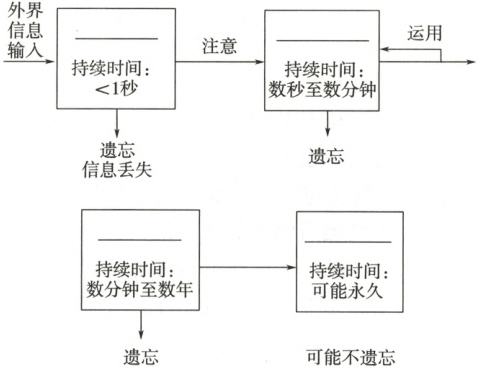 3. 感觉性记忆和第一级记忆相当于短时记忆,需要经过不断重复、强化可转变为长时记忆。 (