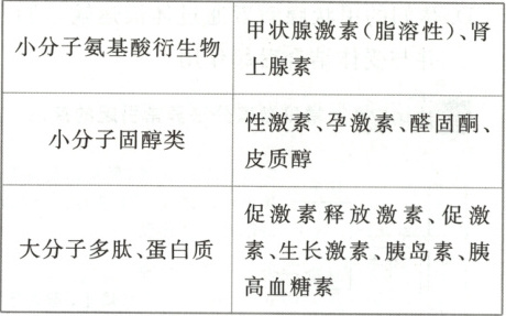 1. 教材$P_{48}$图 3-1 涉及的激素按其化学本质可分为三大类: