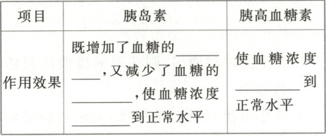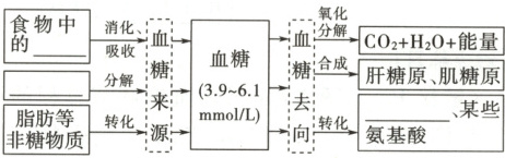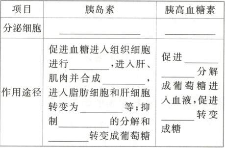 2.胰岛B细胞 胰岛A细胞 氧化分解 糖原 甘油三酯 肝糖原 非糖物质 肝糖原 非糖物质 去向 来源 恢复 回升