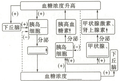 4.提示:血糖含量升高→直接刺激胰岛B细胞→胰岛素分泌增加→血糖含量降低 血糖含量升高→刺激下丘脑有关神经细胞→作用于胰岛B细胞→分泌胰岛素→血糖含量降低