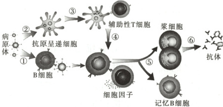 病原体突破人体的第一、二道防线后,未侵入细胞前,会发生如下图所示的体液免疫过程,请据图分析回答以下问题。