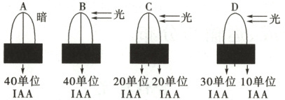 3.提示:光照没有影响生长素的总量,但单侧光照射促使生长素向背光侧转移。