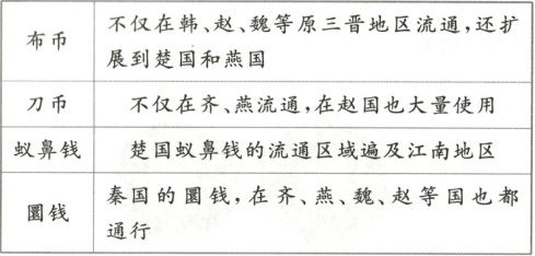 思考:根据材料并结合所学知识,说明战国时期货币的新特点。