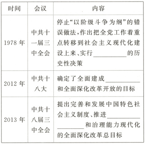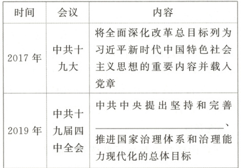(1)改革开放 小康社会 国家治理体系 中国特色社会主义制度