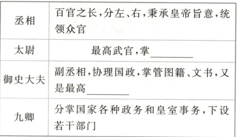 (2)②:军事 监察官 三公九卿共同组成中央政府,国家重大事务往往由公卿进行廷议,最后由皇帝裁断。