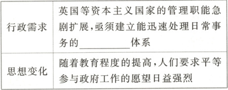 (2)制度:内阁制和政党政治形成后,出现了“政党分肥制”。问题:造成腐败泛滥,影响政府工作的连续性和稳定性,降低了行政效率。