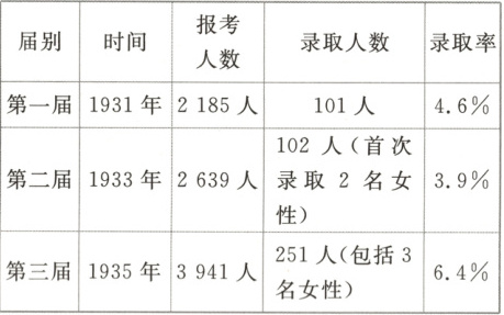 4. (据选择性必修 1 P41“教材知识”改编)如表是南京国民政府举办的前三届高等文官考试报考人数及录取人数情况,由此可知(