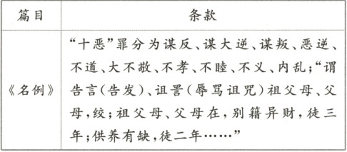 (2)①魏明帝在朝廷设置律博士,命令专用儒家思想来解释律令,进一步推动了律令的儒家化。②法律以亲属之间的尊卑亲疏作为量刑的重要原则之一,目的在于维护儒家提倡的三纲五常。