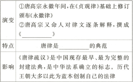 (2) 思考:魏晋时期律令呈现儒家化的特点,有哪些表现?