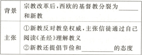 主张① 新教反对教皇权威,主张信徒通过自己阅读《圣经》理解教义